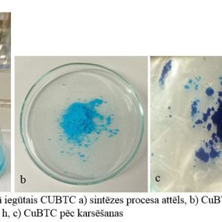 Pēc zinātniskās literatūras rakstiem sintezētas 3 MOS: CuBTC, UTSA-16 un UiO-66(zr)-(COOH)2, kā arī veikti šo MOS imobilizācijas priekš mēģinājumi uz montmorilonīta un aerosila.