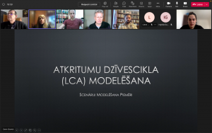 Šī gada 14.12 notika projekta sanāksme LU pētniekiem tiekoties ar SIA ZAAO projekta grupu, lai pārrunātu dzīves cikla analīzes izmantošanas iespējas atkritumsaimniecībā. Pētniece Zane Vinceviča-Gaile iepazīstināja ar programmas SimaPro pielietošanas iespējām un scenārijiem, kas izmantojami SIA ZAAO darbības aprakstam, izvirzot mērķi – samazināt atkritumu apsaimniekošanas ietekmes uz vidi. SIA ZAAO eksperts Mārtiņš Niklass uzsvēra atkritumu savākšanas distances ietekmi uz uzņēmuma darbības efektivitāti un siltumnīcefekta gāzu emisijas apjomiem. Šī jautājuma izpēte tika izvirzīta par vienu no dzīves cikla modelēšanas uzdevumiem. Kā citi aktuāli darba turpināšanas virzieni tika atzīmēta nepieciešamība turpināt izmantojamo datu precizēšanu un gazifikācijas izmantošanas izpēte.