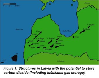 One of the most effective options to limit the increase of carbon dioxide concentration is to capture it from the emission sources before it enters the atmosphere. Carbon dioxide can be captured and stored in porous underground structures that are covered by dense and compact sediments, which are able to isolate the gas from the environment. One of the most promising options for Latvia, and the Baltic States in general, is the storage of carbon dioxide in saline groundwater aquifers. Carbon dioxide reaction with saline water induces mineralization and formation of carbonate minerals, which is a natural carbon sequestration.